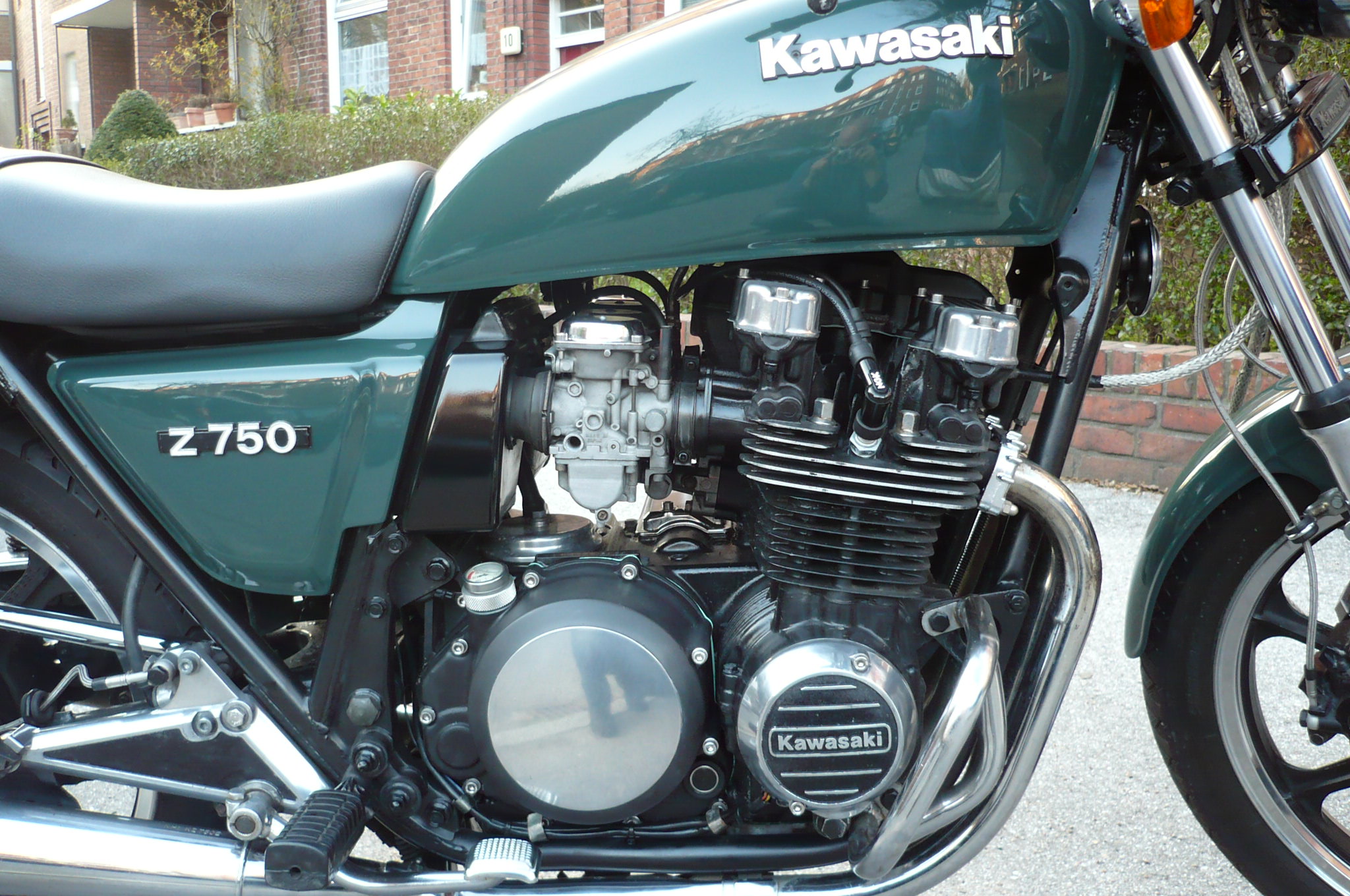 Folgende Teile wurden gebraucht erworben und Restauriert und poliert:Ersatzmotor mit allen Anbauteilen und Motordeckeln (steht im Wohnzimmer), LiMadeckel, Zündungsdeckel, Ritzelabdeckung, Kupplungsdeckel, Ventildeckel, Bürzel, Soziusbügel, Hydraulische Kupplung von ZX750, Spiegel, 2 Blinker, Innenradlauf, Schutzblech hinten, Giuliari Sitzbank, Vergaserdeckel Chrom, Kettenschutz Chrom (LTD), Sturzbügel Chrom, Batteriekasten, Flügelschraube Tank, Seitendeckelembleme „Z750“, Gepäckträger, Fach für Bedienungsanleitung, Bedienungsanleitung, Anlasserdeckel mit Dichtung, Reflektoratrappen Bürzel,